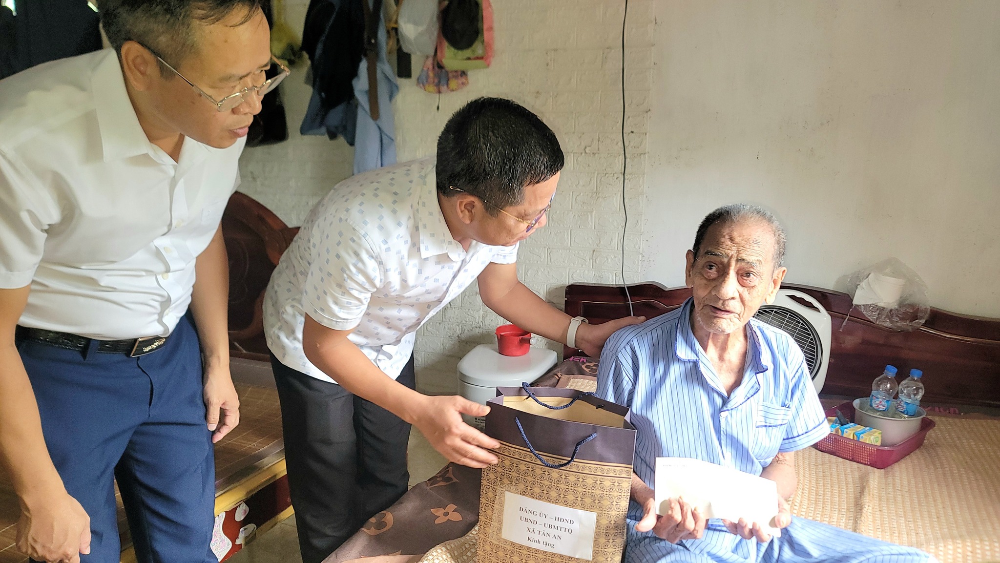 Đoàn đã trực tiếp đến thăm, tặng quà 8 cụ cao niên thượng thọ tiêu biểu gồm: Cụ Nguyễn Thị Tích 103 tuổi ở thôn Tiền Liệt; Cụ Nguyễn Thị Khánh 101 tuổi, cụ Nguyễn Thị Bàn 100 tuổi cả 2 đều ở thôn Đồng Lạc; Cụ Nguyễn Thị Bìa 100 tuổi ở thôn Kim Húc; Cụ Trần Thị Dom 108 tuổi ở Thôn 2; Cụ Bùi Thị Gái 105 tuổi ở thôn 1; Cụ Nguyễn Văn Mịch 102 tuổi ở thôn Ứng Mộ và Cụ Nguyễn Thị Tải 98 tuổi ở thôn Kim Chuế. Mỗi phần quà là sự quan tâm, tri ân sâu sắc của cấp ủy, chính quyền địa phương đối với những đóng góp của các cụ trong sự nghiệp xây dựng và phát triển quê hương.