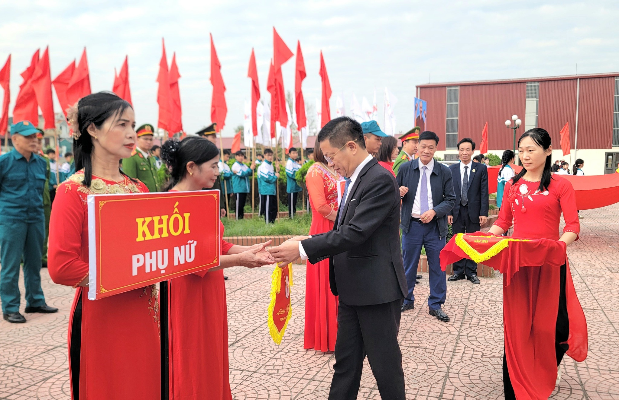 Đồng chí Nguyễn Gia Bảng- Bí Thư Đảng ủy, Chủ tịch HĐND xã tặng hoa chúc mừng Đại hộiDự tặng hoa chúc mừng Đại hội có đồng chí Nguyễn Gia Bảng- Bí Thư Đảng ủy, Chủ tịch HĐND xã; các đồng chí Thường trực, Ban Thường vụ Đảng ủy, Thường trực HĐND, lãnh đạo UBND, Thường trực UBMTTQ Việt Nam xã; Các đồng chí thành viên Ban chỉ đạo Đại hội Thể dục thể thao xã; Trưởng, Phó các phòng ban, cơ quan; Bí thư các chi bộ, Trưởng thôn và đông đảo quần chúng nhân dân địa phương.