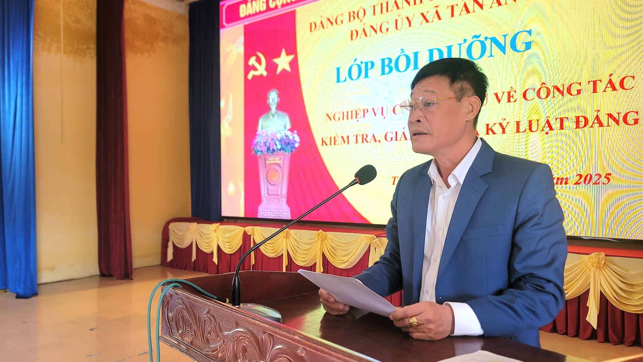Đồng chí Trần Quang Cao – Phó Bí thư Thường trực Đảng ủy phát biểu khai mạc lớp bồi dưỡngNgày 25/12, tại Hội trường Trung tâm xã, Ủy ban Kiểm tra Đảng ủy xã Tân An tổ chức lớp bồi dưỡng nghiệp vụ chuyên sâu về công tác kiểm tra, giám sát và thi hành kỷ luật trong Đảng năm 2025.